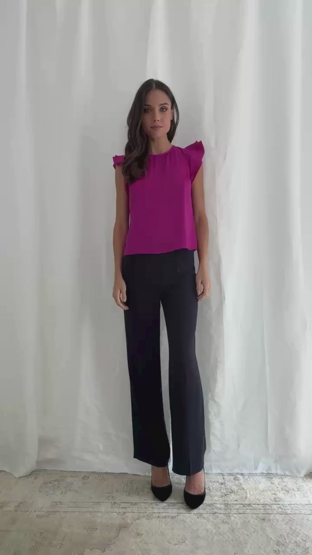 Avec sa teinte magenta vibrante et ses doubles volants, notre top Marta est une pièce incontournable de la saison.